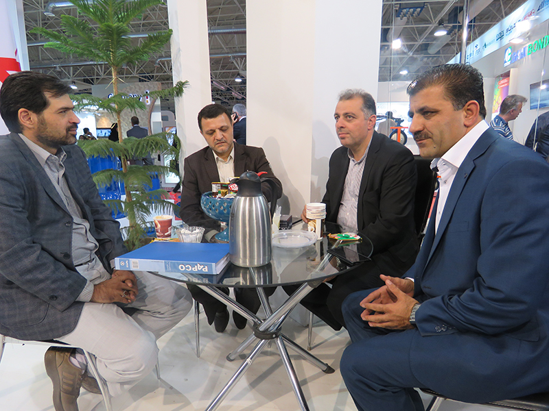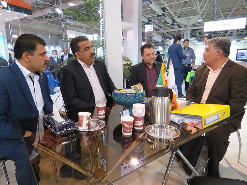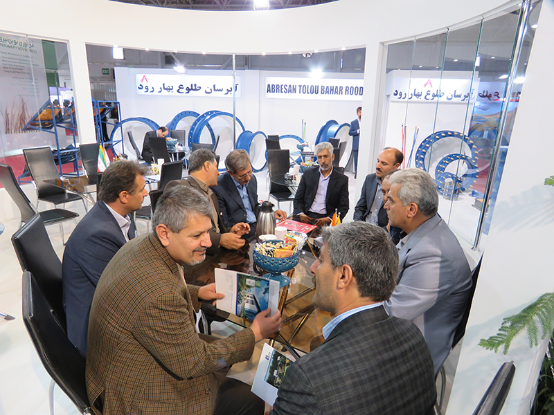 آقای مهندس جلیلیان مدیر بازرگانی و آقای مهندس قطبی مدیر امور قراردادهای بازرگانی آب و فاضلاب منطقه 1 تهران، مهندس براتی مدیر فنی آب و فاصلاب تهران، مهندس کارگری مدیرعامل آب و فاضلاب شرق استان تهران، مهندس نظر پور و معاونت فنی توسعه مهندس بهروز به همراه پرسنل محترم در غرفه آبرسان طلوع بهاررود